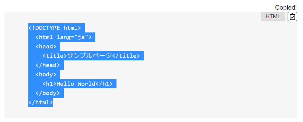 右上のクリップボードのマークをクリックするとコピーできます。↓こんな感じ。