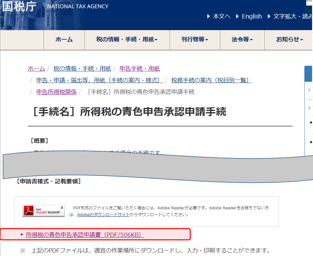 今回は「所得税の青色申告承認申請書」いわゆる青色申告書のダウンロードの方法についてまとめました。